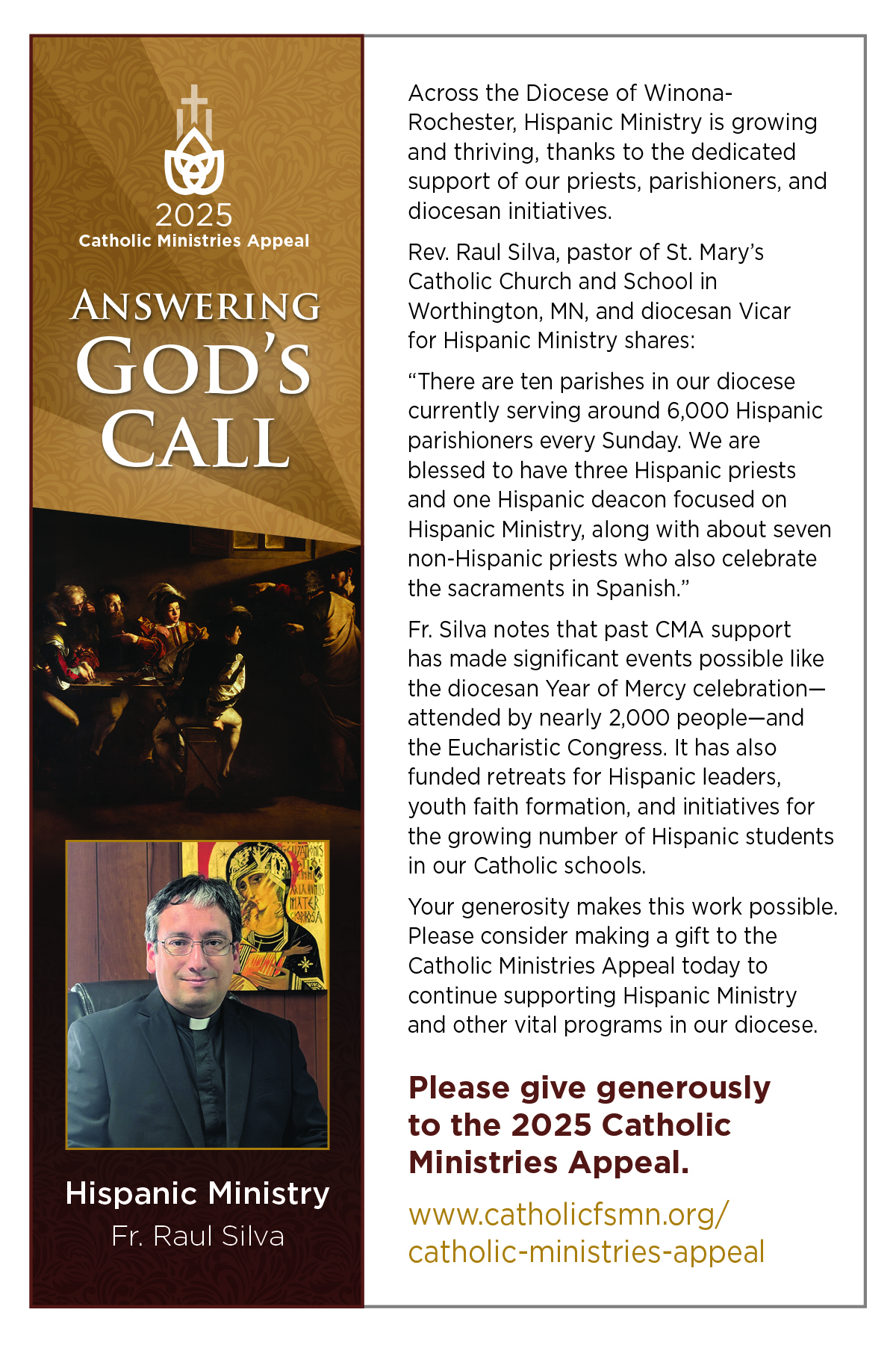 Rev. Raul Silva, pastor of St. Mary’s Catholic Church and School in Worthington, MN, and diocesan Vicar for Hispanic Ministry shares:
