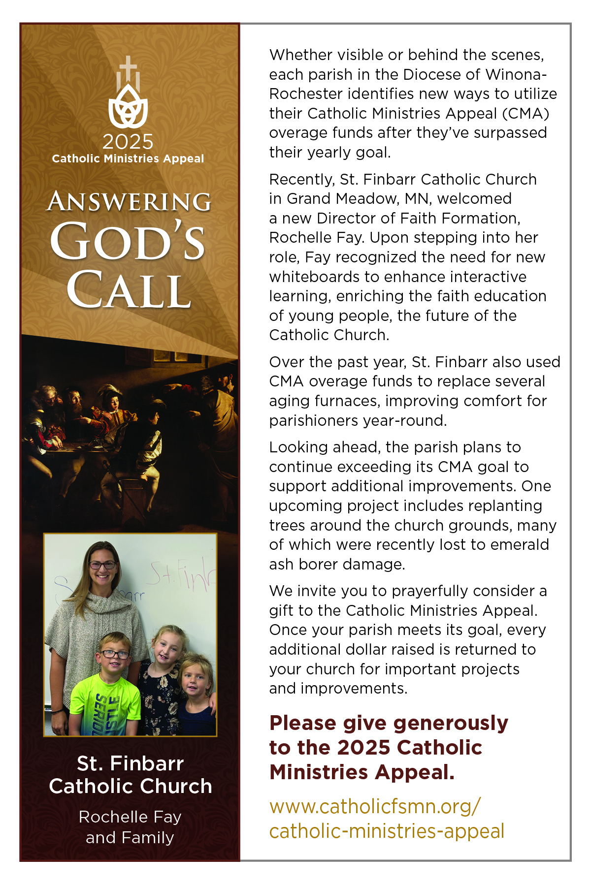 Please give generously to the Catholic Ministries Appeal: www.catholicfsmn.org/catholic-ministries-appeal
